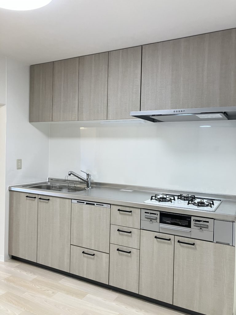 3つ口コンロで便利なキッチンで、換気扇は取り外しが簡単!お掃除も楽ちんなシステムキッチンです!