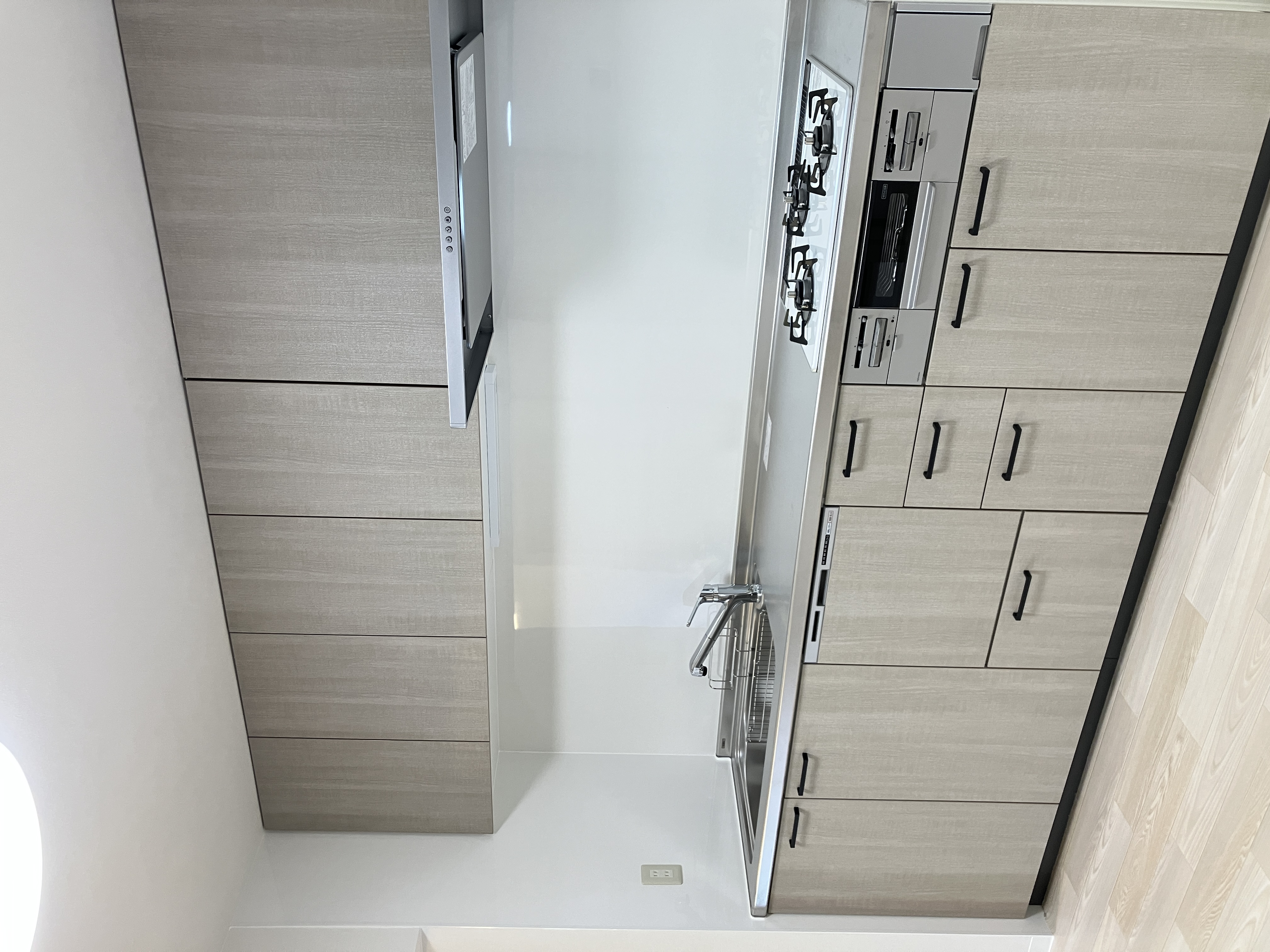 3つ口コンロで便利なキッチンで、換気扇は取り外しが簡単!お掃除も楽ちんなシステムキッチンです!