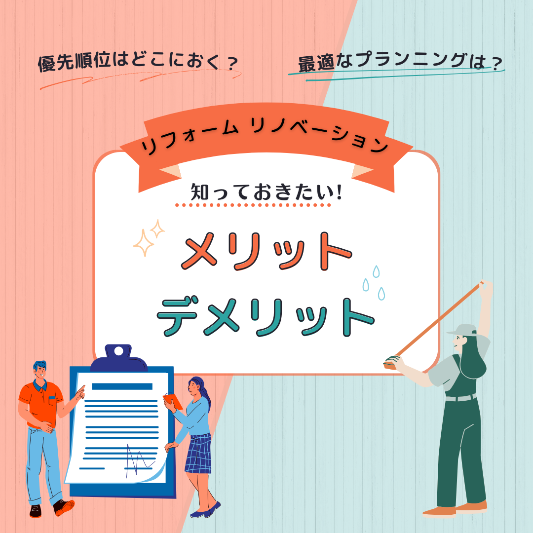 | リノベーション | 新しい生活空間を作り出せる 住宅の価値を大幅に向上させられる | 工期が長く費用がかかる |