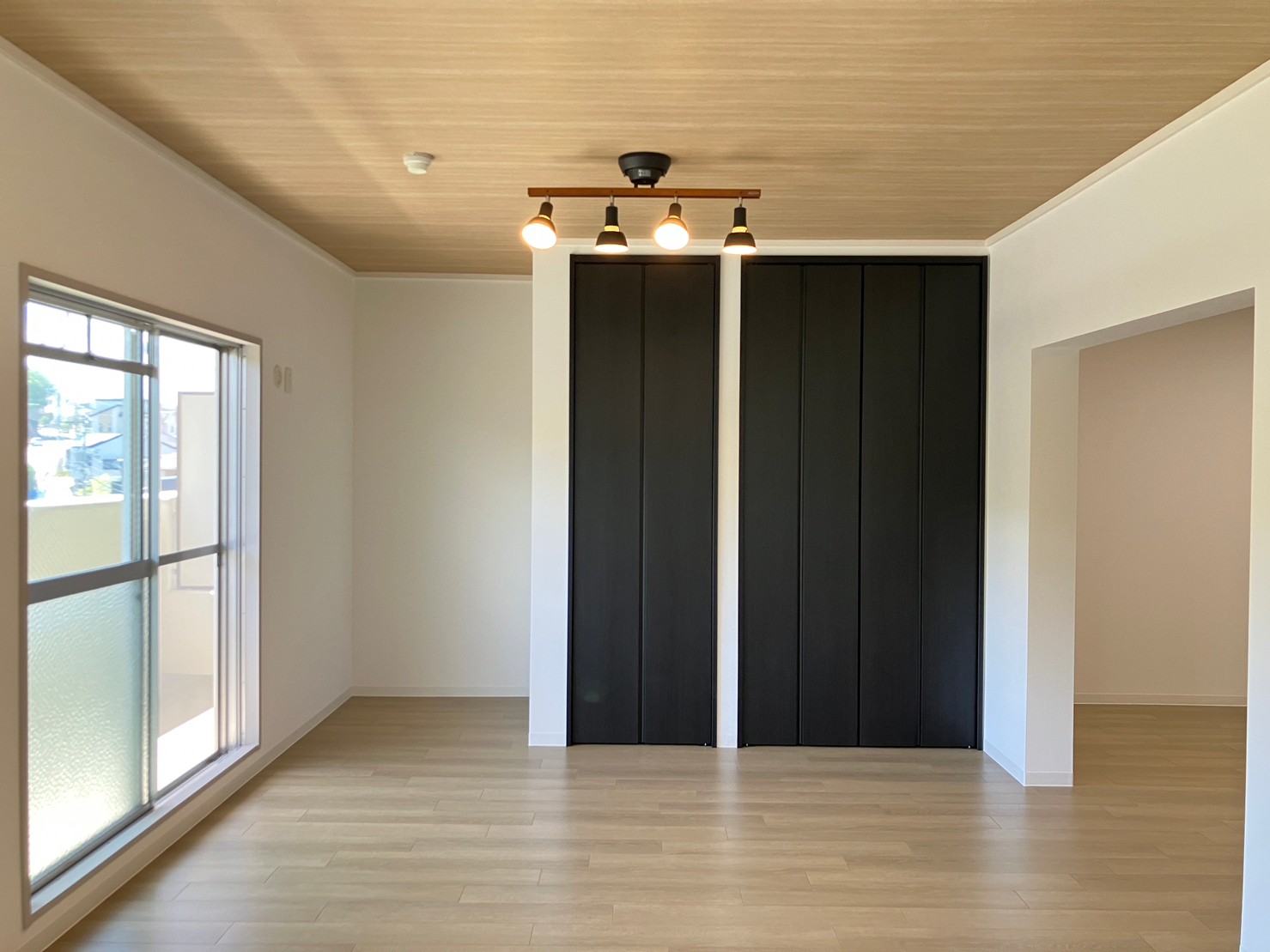 リビングの奥には水玉模様のふすまがモダンな畳コーナーがあります。