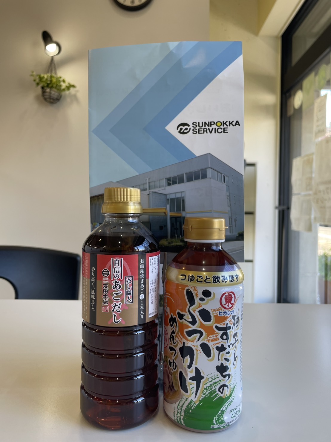 出展されていたサンポッカサービス株式会社様のブースが近くにあり、イチオシのお出汁を教えていただいたようです!